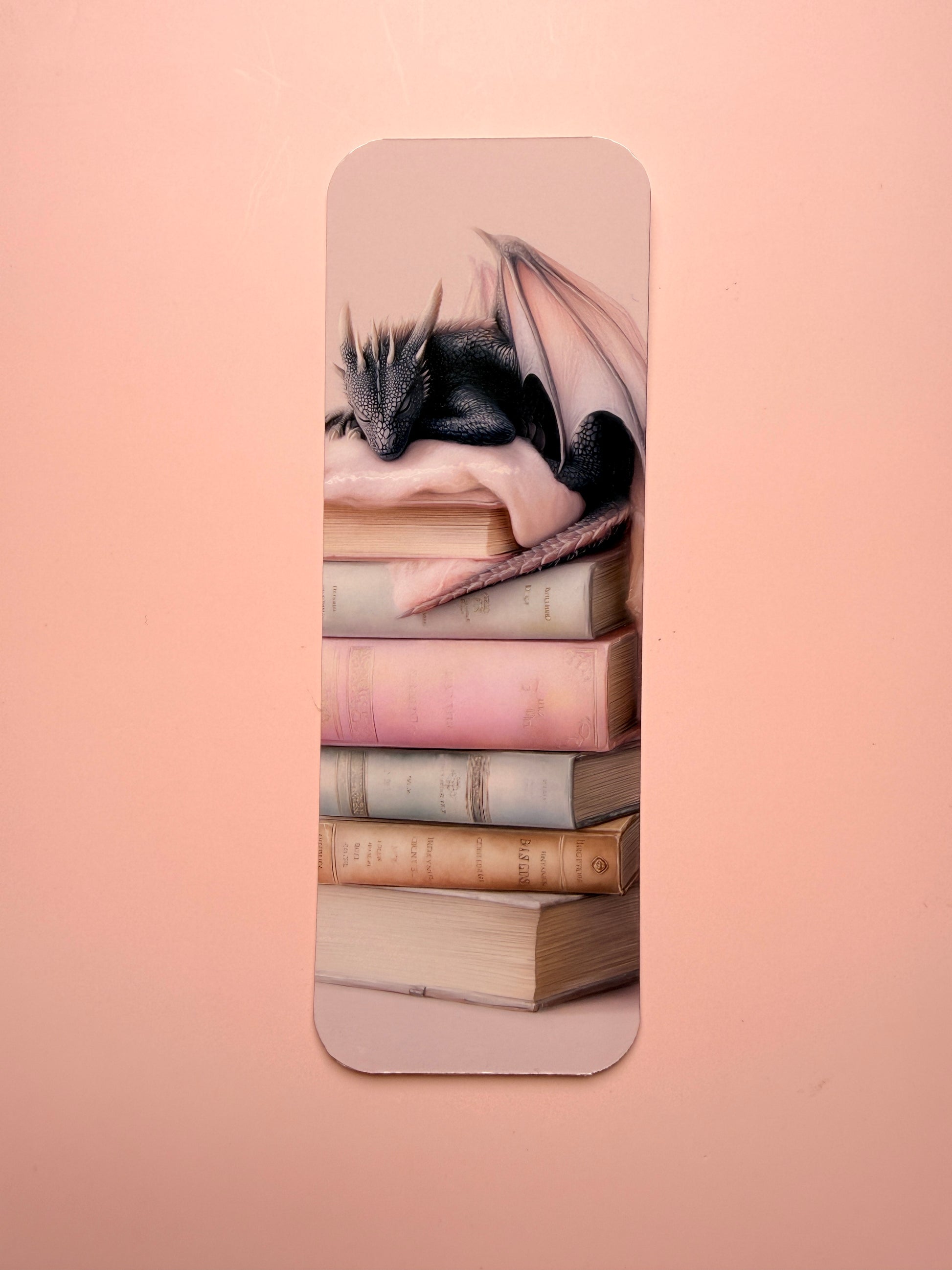 Dragon Reading Bookmark – Cozy Fantasy Book Stack Bookmark for Readers