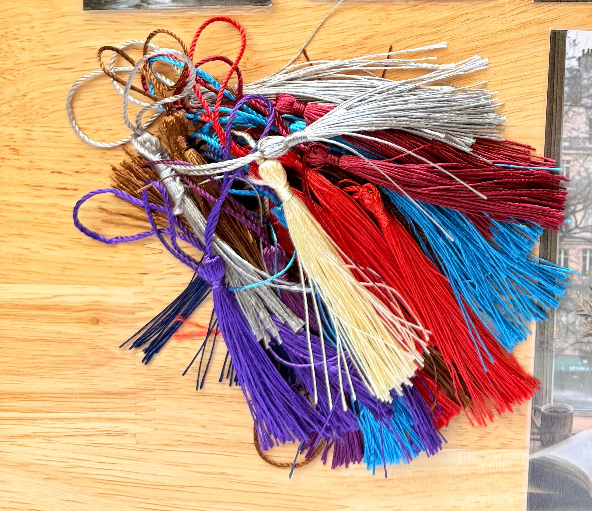 Cozy fantasy artwork featuring a tiny dragon on pastel books
